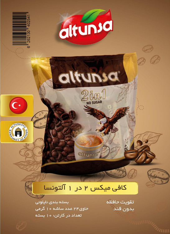 نسکافه آلتونسا رژیمی (پودر قهوه فوری) 2 در 1 با ترکیبات فاقد شکر برای افرادی که در رژیم غذایی هستند و یا وجود قند در نسکافه برای آنها مضر است پیشنهاد میشود. پودر خامه غیرلبنی، مالتو دکسترین، پودر قهوه فوری و سیلیکون دی اکساید از ترکیبات پودرقهوه فوری دو در یک Altunsa است.