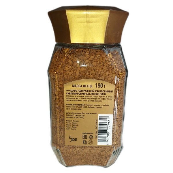 از بهترین قهوه های فوری موجود در بازار، قهوه فوری جاکوبز گلد طلایی 200 گرمی است که توسط تیم کارشناسی کمپانی جاکوبز با استفاده از روش های خاص، به طعم مطلوب یک قهوه آروماتیک و ملایم و با عطر و طعم غنی، تهیه شده است. قهوه فوری جاکوبز طلایی در شیشه های حاوی 200 گرم قهوه فراوری شده با کیفیت بسته بندی میشود و میتواند برای یک ماه مصرف دو الی سه نفر کافی باشد.